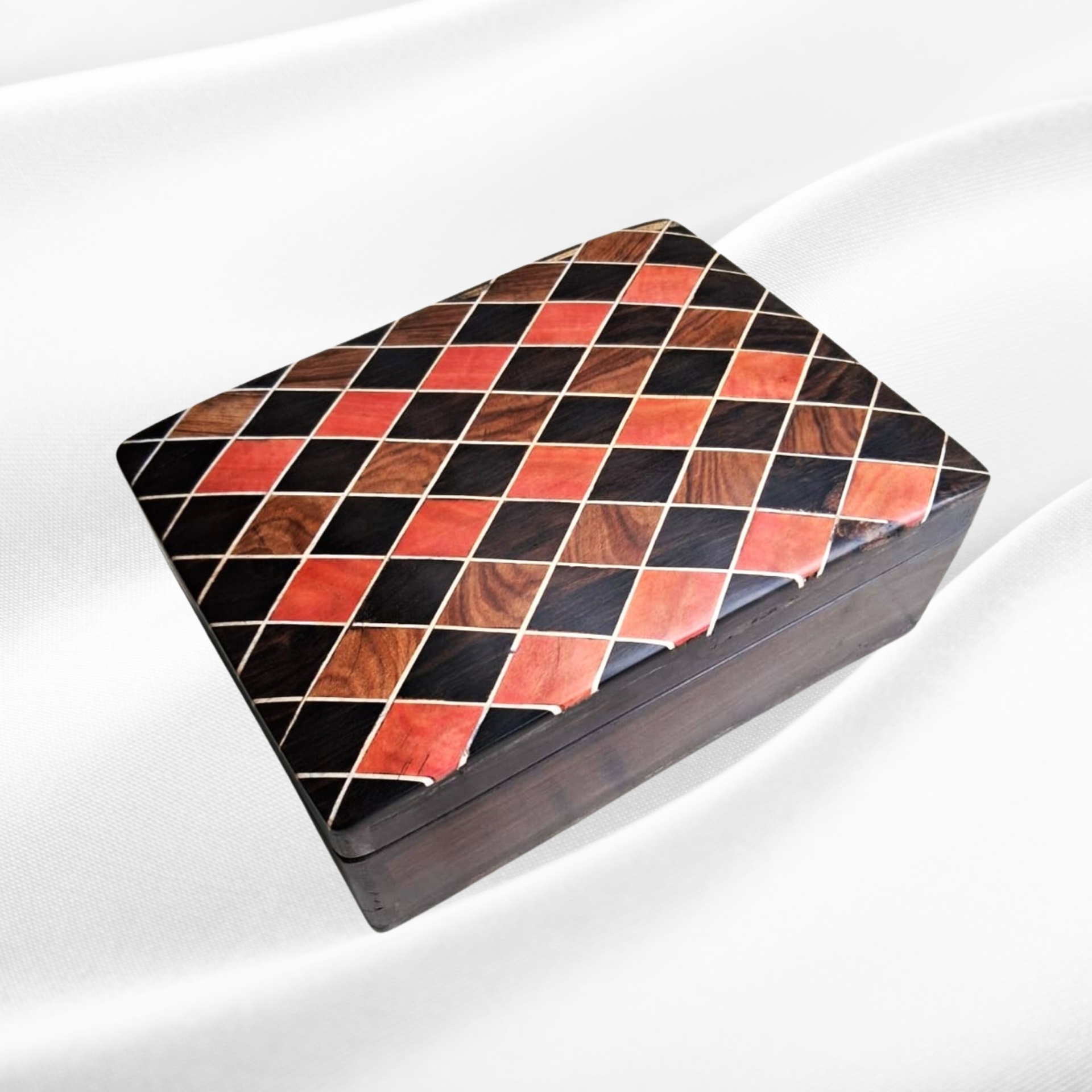 Guarda-joias Pau Preto tampa articulada c/ Losangos PP SD PR